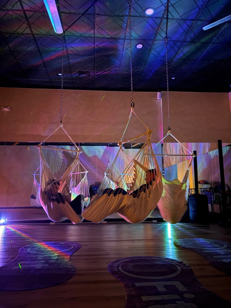 Special Souls classes offer a welcoming, sensory friendly space where participants can explore gentle movement, music, stretching, and mindfulness at their own pace. Each class encourages creativity, confidence, and joyful self expression, while helping regulate the nervous system through breathwork and calming activities. Every session ends with peaceful hammock relaxation to help the body settle and the mind feel safe, supported, and at ease.